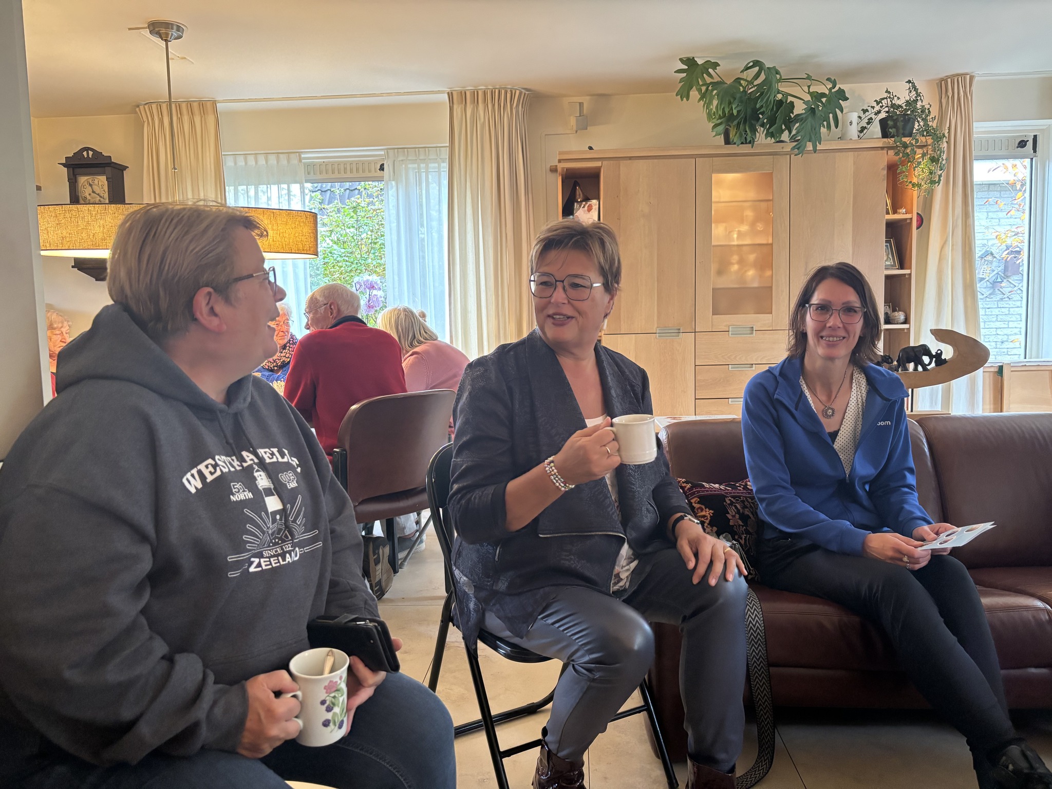 Eén van de bewoners nodigde de medebewoners bij haar thuis uit voor koffie met wat lekkers. Zij kregen bezoek van wethouder Herma van Dijkhuizen en sociaal werker Charlotte van Kessel. De opstart van de Lief & Leedstraat en de koffieochtend viel met 20 bezoekers in goede aarde.